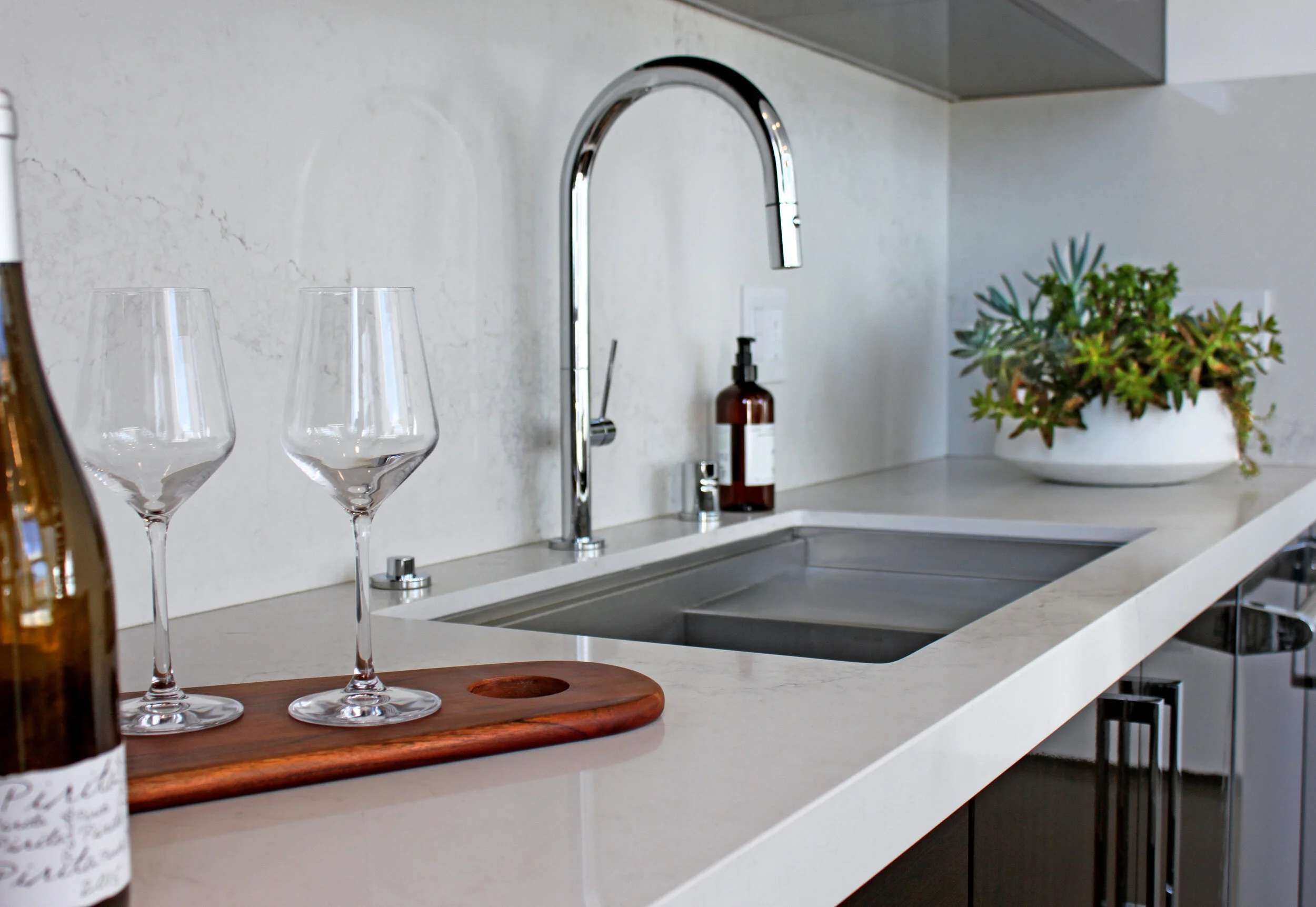 The ultimate modern loft equipped with a true entertainers kitchen. Linear in nature, with subtle touches of polished chrome hardware, this stylish kitchen evokes sheer luxury. By strategically placing the kitchen in the center of the home, natural light is filtered from every angle. Elements were carefully selected in an effort to tie in the beautiful architecture of the structure. Designed by renowned LOHA Architects, the building lends itself as a modern showpiece in the heart of Hollywood. It was with the same level of detail that the design plan was curated and constructed.